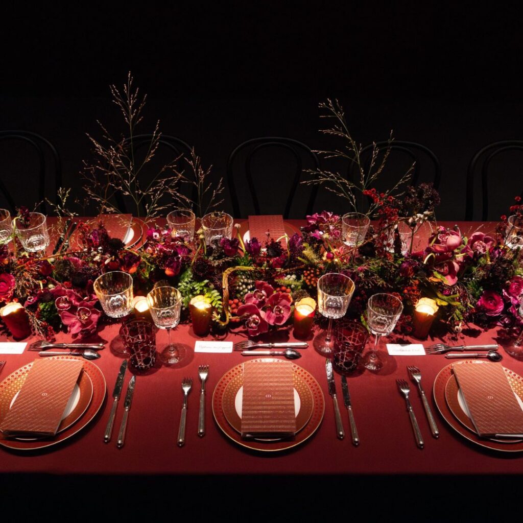 Each culinary experience is designed as a fully immersive concept, combining gastronomy, scenography, floral arrangements and table styling.
